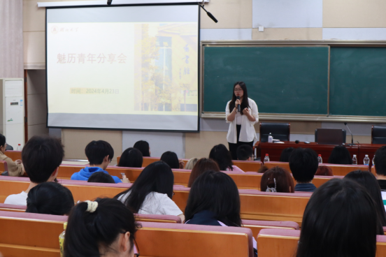 4月23日上午,我院在阳逻校区成功举办魅历青年分享会暨第13期“毓秀有约”。本次交流会邀请了迟皓阳、朱梦鑫、汪晓燕、孙晨曦四位优秀大四学长学姐,他们结合自身经历分别就专业学习、保研竞赛、教资备考等方面的经验进行了分享,旨在为大一同学们今后的学习生活、发展规划提供有益的参考与借鉴。五十余位同学来到现场,认真聆听学长学姐的经验分享,积极与他们互动交流。分享会由辅导员马璇老师主持。