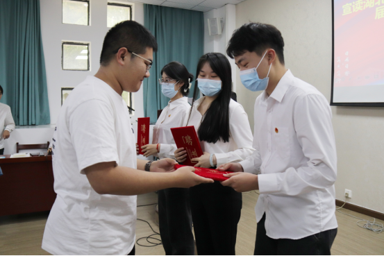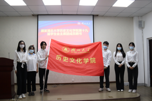 参会的学生代表通过民主选举选举出了新一届主席团成员:魏淑怡、卯浩呈、阿依乔力盼·买买提。辅导员李涤非为上一届主席团成员颁发了荣誉证书,对他们一年来为学院发展,学生服务的辛勤付出表示肯定和感谢,之后,两届主席团成员进行了院旗交接仪式。