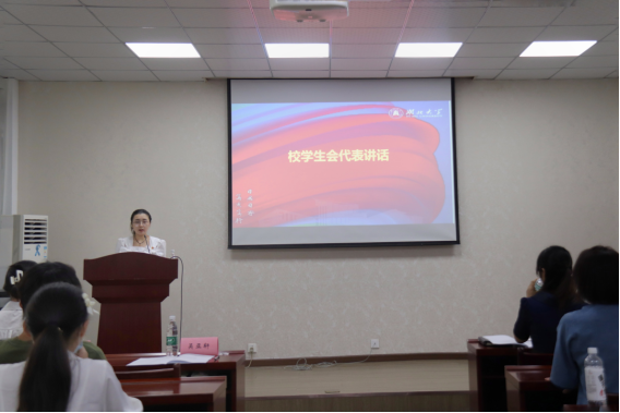 会议伊始,学院党委副书记郭仿兰代表学院党委向大会的召开表示热烈的祝贺,对过去一年学生会、各团学骨干参与学院建设、促进学生全面发展、构建和谐校园做出的贡献表示肯定,并提出三点希望,一是坚定理想信念,志存高远;二是练就过硬本领,不负韶华;三是,增强责任担当,不忘初心。她讲到青年时期是学习知识、增长才干的黄金时期,是极具活力、创造力的关键时期,各团学骨干明身份、勤思考、勇担当、善总结,牢牢把握机会,不断拓宽知识领域、完善知识结构,努力掌握科学文化知识,并鼓励同学生主动承担学院与学生之间的桥梁纽带作用。她补充道,今年是中国共产主义青年团建团百年,百年前中国共青团作为中国共产党助手和后备军,在实现中华民族伟大复兴的征程上积极发挥突击队作用,站在新时代新征程,广大青年学生始终心怀“国之大者”,立足民族复兴,不负韶华、不负时代、不负人民,接好时代接力棒,以实际行动迎接党的二十大胜利召开。