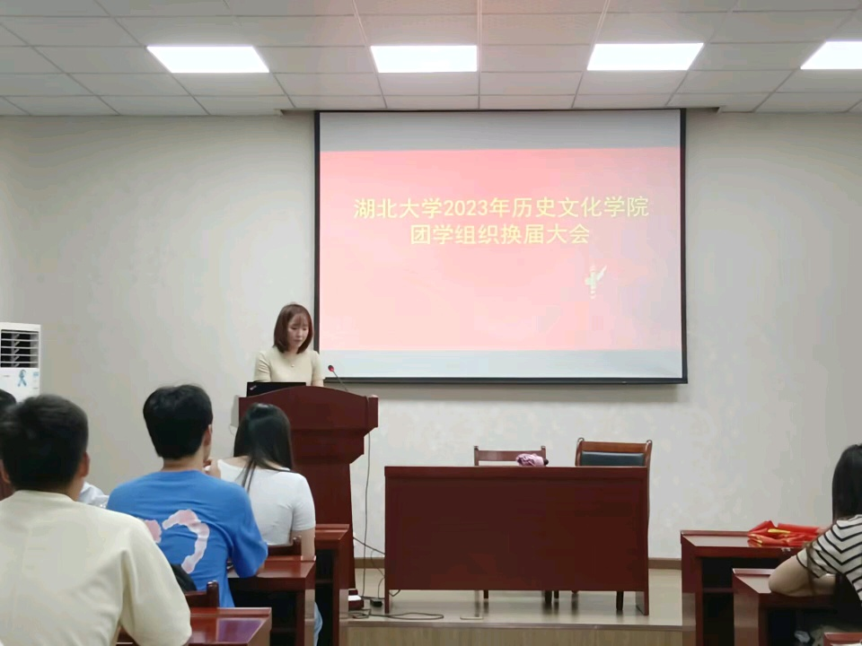 在团歌齐唱声中,大会拉开帷幕。7名来自不同部门的新团学组织负责人依次上台发言,对未来的工作进行了展望与规划。“我们将提高思想认识,精进业务能力,根据实际情况不断调整工作方式、优化工作路径,不懈怠、不退缩、不畏惧。”“加强与各团学组织的沟通交流,历院是一个大家庭,各组织应该团结一致,共同为历院发展而努力。”