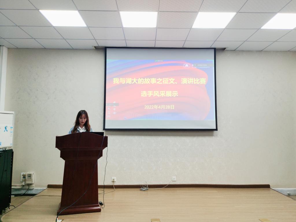 经过前期的初赛,14名同学进入当天的决赛。参赛选手结合湖大人物、事件、故事,或与前人隔空对话,或以日记的形式或图文解说进行演讲,或结合自身经历分享了一场又一场的湖大故事、湖大记忆。