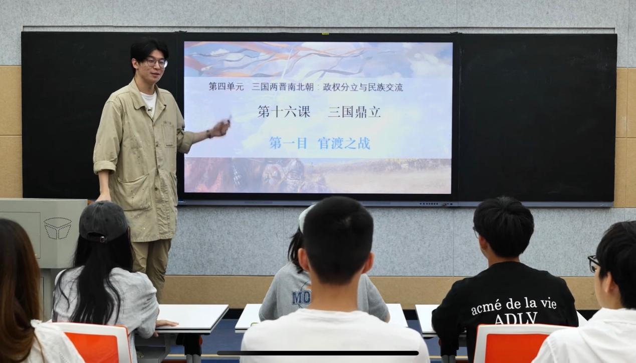 本次师范竞赛由本科生院、师范学院精心组织,共9个参赛学科所在学院师生积极参与,共同完成了院级初赛、校级复赛和省级决赛环节。受疫情影响,本次决赛采用线上线下结合方式举行,参赛选手须在规定时间内线上抽题,48小时内录制符合要求的模拟上课视频(10分钟)和说课视频(5分钟)并上传。乔越同学抽到《三国鼎立》一课,在老师们的建议下选择“官渡之战”一目作为讲授内容。他以人物经历为主线,通过曹操的个人经历和历史影响,讲授其为统一北方所作的努力,揭示了祖国统一是历史发展的必然趋势。他在比赛中沉着应对,出色完成各项任务,获得佳绩。备赛期间,学校邀请了校内外专家进行多轮培训、指导,学科专业教师也持续跟踪和精心辅导以帮助参赛选手呈现最佳状态。我院也高度关注本次竞赛,院领导一如既往地在比赛的各个方面予以高度重视和支持。我院张宁老师、刘馗老师和刘志玲等老师们在学生备赛过程中给予了全程专业、耐心的指导。