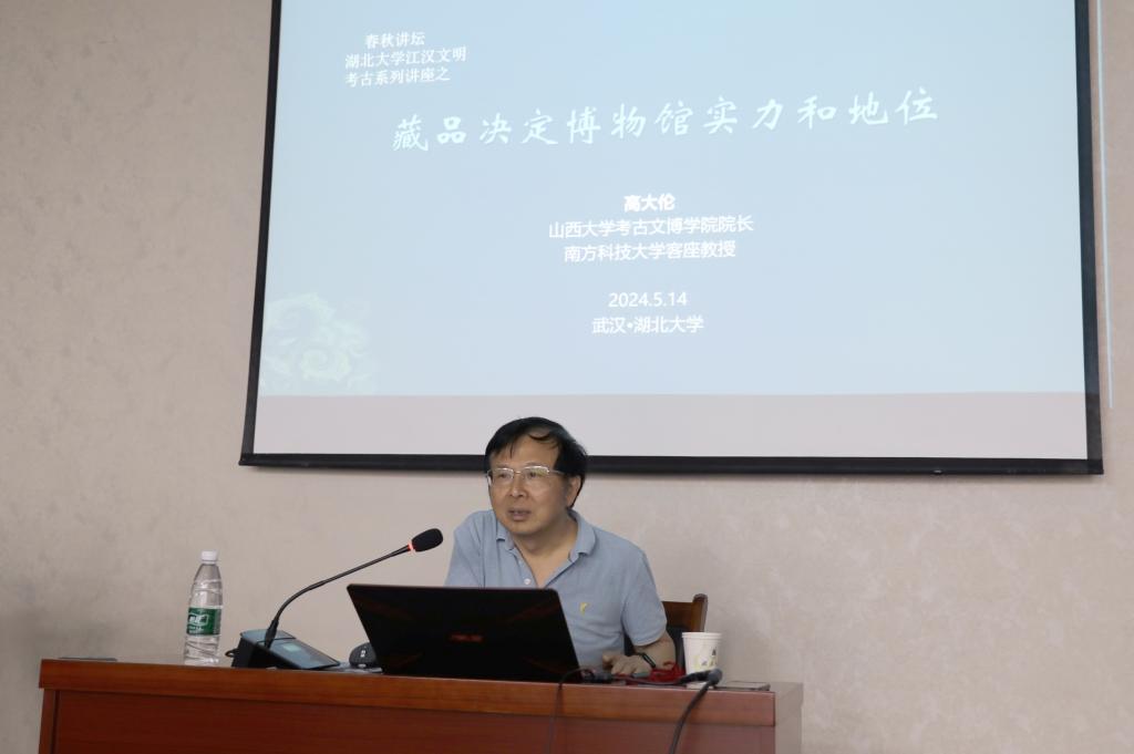 5月14日,山西大学考古文博学院高大伦院长做客我院“春秋讲坛”,作了题为“藏品决定博物馆实力和地位”的学术讲座,黄柏权院长主持,学院2022级文物与博物馆学、文化遗产学专业学生及相关教师参加。