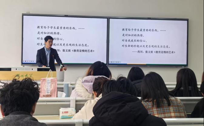 讲座结束后,刘馗老师对讲座进行了总结。他指出彭磊老师的讲座以高中历史课程标准为核心,理论与实践相结合,通过优秀案例的展示分析,使大家对如何基于历史课程标准进行教学设计的方法和模式有了深刻认识。他希望同学能够通过对今天讲座内容的学习和体会,在未来的教育实习和教学比赛等方面能够有所收获和教学素质的真正提升。