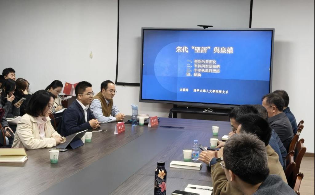 2025年10月20日下午,清华大学人文学院历史系方诚峰教授应邀为我院师生带来了一场题为“宋代‘圣语’与皇权”的专题讲座。黄光辉副教授主持,曾育荣教授、廖寅教授、刘广丰副教授及部分中国史博、硕士研究生参加了讲座。