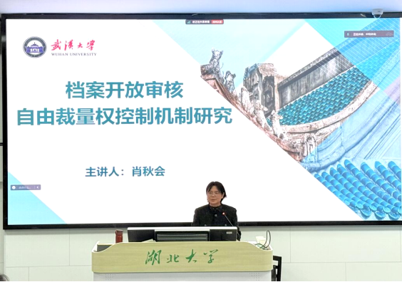 2025年11月6日下午,一场主题为“档案开放审核自由裁量权控制机制研究”的学术讲座在英国365集团公司教3楼101教室举行。本次讲座邀请到档案学领域的资深专家、武汉大学肖秋会教授担任主讲,为到场师生带来了一场关于档案开放审核核心议题的深度思辨。本次讲座由李青维老师主持。