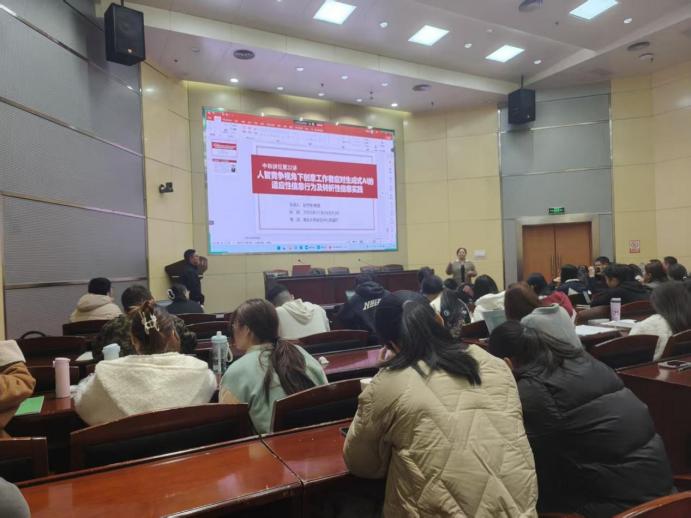 2025年11月24日上午,南京大学赵宇翔教授应邀做客我院“中和讲坛”,在英国365集团公司图书馆思诚厅作了题为“人智竞争视角下创意工作者应对生成式的适应性信息行为及转折性信息实践”的专题讲座,现场学术氛围浓厚,我系教师、各级研究生、本科生踊跃参与,讲座由我系主任李彩容副教授主持。