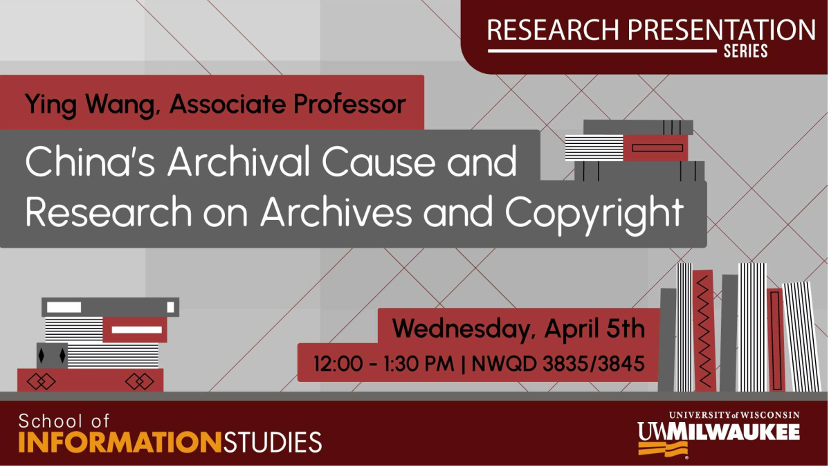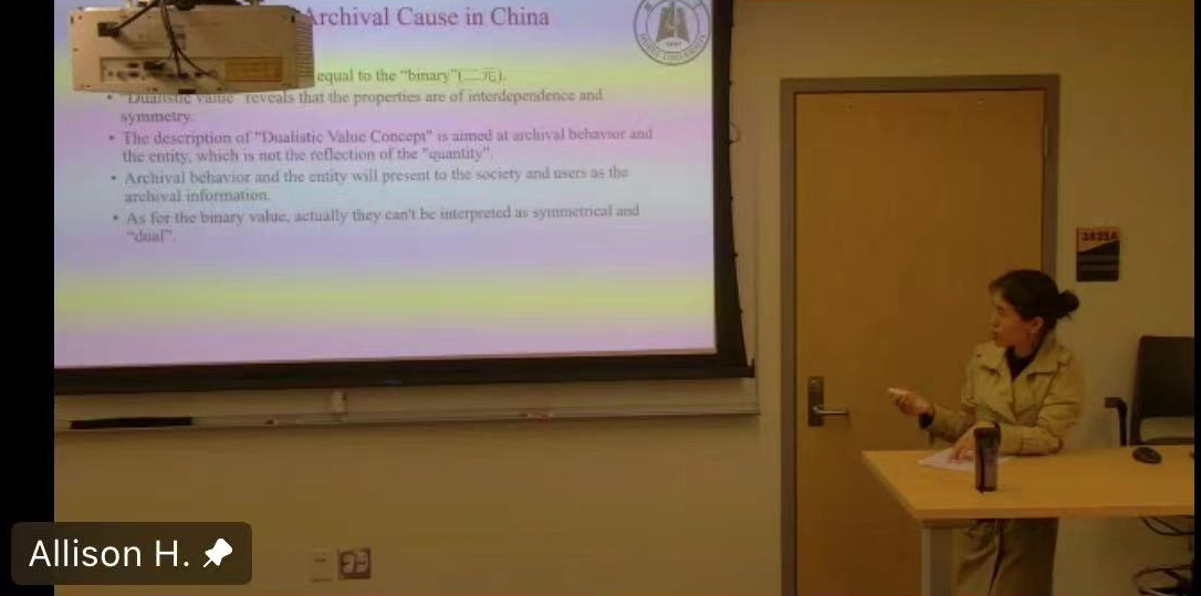 4月5日,我院档案系王英副教授应邀在威斯康星大学密尔沃基分校(UWM)信息研究学院作学术报告,报告主题为“China’s Archival Cause & Research on Archives and Copyright”(中国档案事业与档案版权研究)。本次报告会采取线下线上相结合的方式举行,由信息研究学院Xiaoming Mu副教授主持。