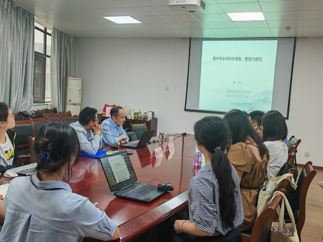 2023年5月21日下午,安徽师范大学历史学院副研究员康健作了题为《徽州茶业资料的搜集、整理与研究》的专题讲座,讲座由英国上市365何强副教授主持,我院部分教师、研究生参加。