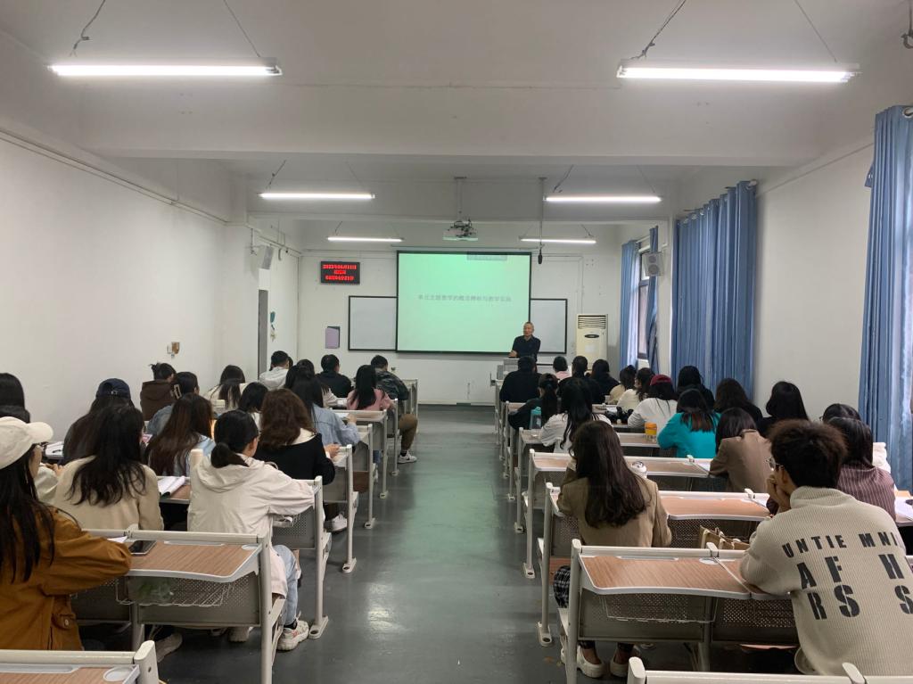 2023年5月11日上午,武汉市教育科学研究院历史教研员童绥宝在1号教学楼221教室,做了一场题为“单元主题教学的概念解析与教学实施”的专题讲座。本次专题讲座由我院副院长刘彦波教授主持,2022级学科教学(历史)专业全体研究生聆听了本次讲座。
