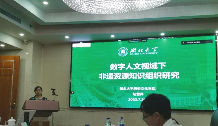 赵雪芹教授在会上作了“数字人文视域下非遗资源知识组织研究”的主题汇报,她从知识抽取、本体构建、知识图谱三个方面展现了新时代档案学科的跨领域研究,并与参会专家进行了深入交流,共同探讨了新时代档案学和档案事业的创新发展道路。