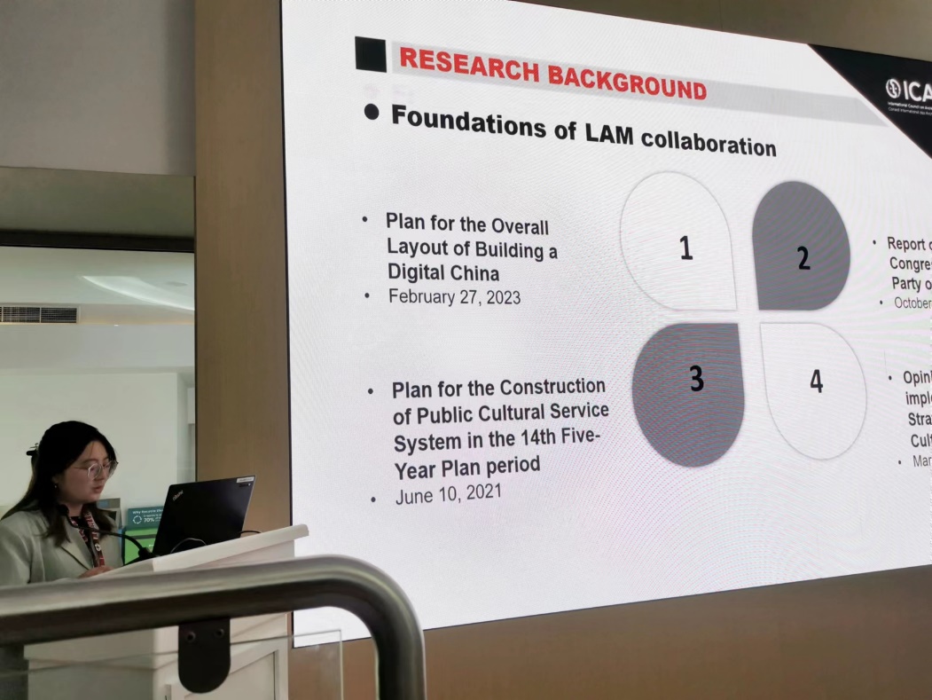 当地时间2023年10月12日下午3点45分,吕文婷副教授、档案学专业本科生田静静在会上作了题为Metaverse empowering LAM collaboration: An investigation of LAM in China的报告,主要从研究背景、调查与分析及元宇宙技术如何赋能LAM((Library,Archive and Museum)协作三方面展开,并与参会人员进行交流和探讨。该报告是在吕文婷副教授的指导下,由本科生田静静、易瑞、孟湖艳在梳理中国LAM协同发展现状的基础上,结合时代背景与政策背景,分析三馆在资源、服务和管理协同发展中存在的问题,并借助元宇宙技术的现有成果和未来发展的可能性,探索其赋能LAM协同发展的可行性。