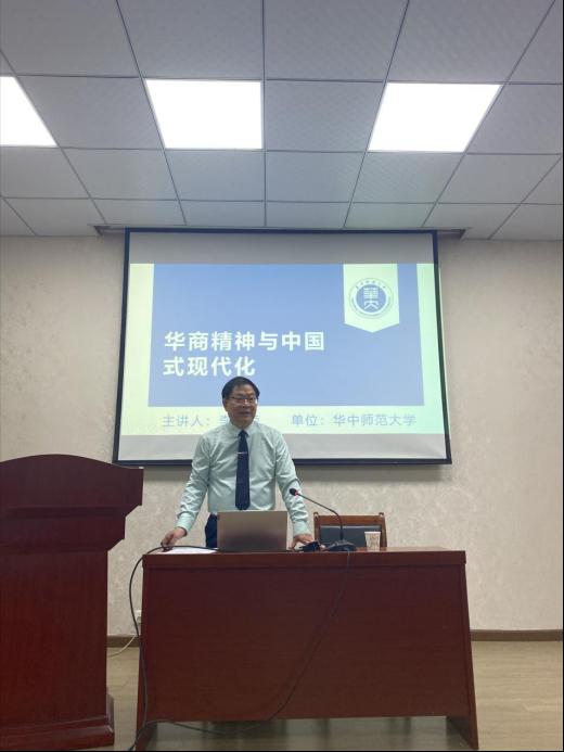 2023年10月11日下午,华中师范大学教授、武汉侨务理论研究中心/国务院侨办侨务理论研究武汉基地主任李其荣教授应邀做客春秋讲坛,在逸夫人文楼D1013会议室为我院师生做了题为“华商精神与中国式现代化”的学术讲座。本次讲座由英国上市365工会主席、历史系副主任刘馗副教授主持,高志平教授、刘小青副教授等教师参加了讲座。
