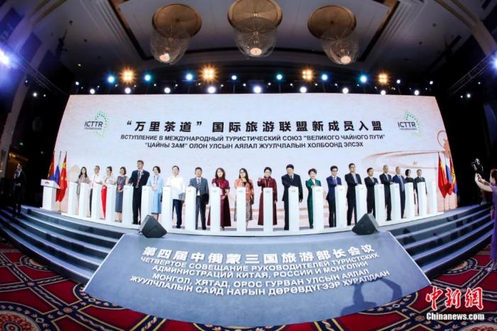 2019年6月23日,20家中俄蒙“万里茶道”国际旅游联盟成员单位代表在内蒙古自治区乌兰察布市共同启动“万里茶道”地图。张玮 摄