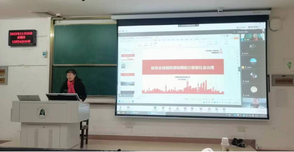 2023年11月30日下午,中国铁塔技术专家曹晟教授以《铁塔全域视联感知网助力智能社会治理》为题,为我院师生进行了一次精彩的讲座。本次讲座由我院档案系系主任李彩容教授主持,在教4-407教室以线下线上相结合的方式举行,22级全体研究生、部分本科生以及部分青年教师参加了此次讲座。