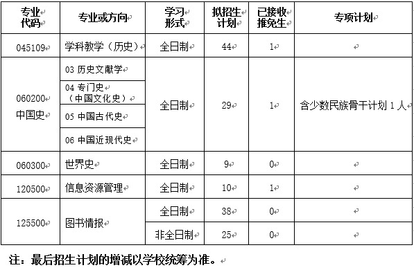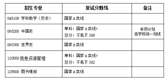 1.中国史、世界史、信息资源管理专业、学科教学(历史)、全日制图书情报专硕专业一志愿上线生源充足,均不接收调剂。