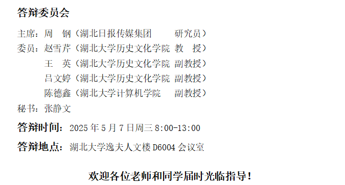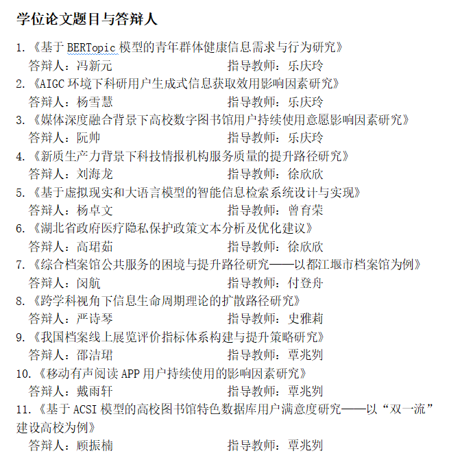 2025上半年图书情报硕士学位论文答辩会4组公告