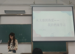 谢可儿同学以“从无感到热爱—我的档案学习”为主题,通过引入趣味档案资料、“档案+游戏”实例、武汉市档案馆等自身实习经历,讲解了自己为何对档案学学科从“无感”到“热爱”。同时,谢同学从背书方法、日常学习、记录笔记、学习软件等方面向大家介绍了自己的学习方法,如鼓励同学们在闲暇之余在慕课上学习自己感兴趣的课程,在档案学学习过程中领略到档案学的独特魅力。