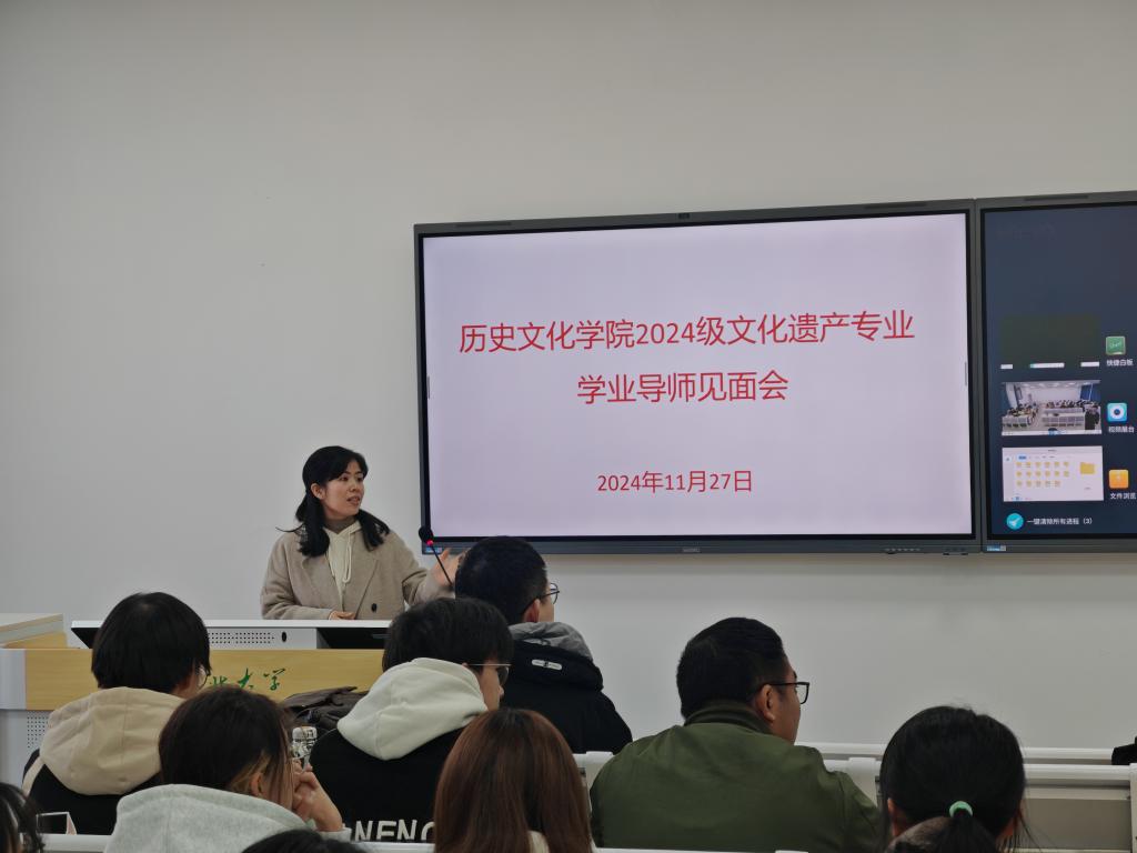 春晖指路,镌刻光阴。11月27日,文化遗产专业2024级本科新生见面会在阳逻校区B311教室举行。本次见面会上,文化遗产专业教师以及高年级学生代表与2024级文化遗产同学围绕学业规划、学习经验、实习实践、校园生活等方面进行了全面深入的交流与分享。