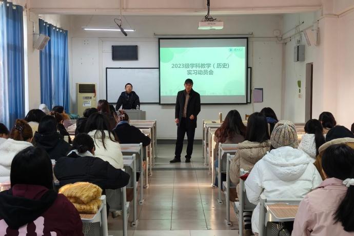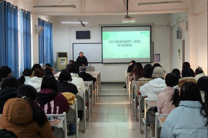 2024年12月18日上午九点,我院2023级学科教学(历史)专业研究生在教1—222教室举行了实习动员会,我院副院长刘彦波教授、班主任刘馗副教授以及2023级学科教学(历史)专业全体研究生参加此次会议。