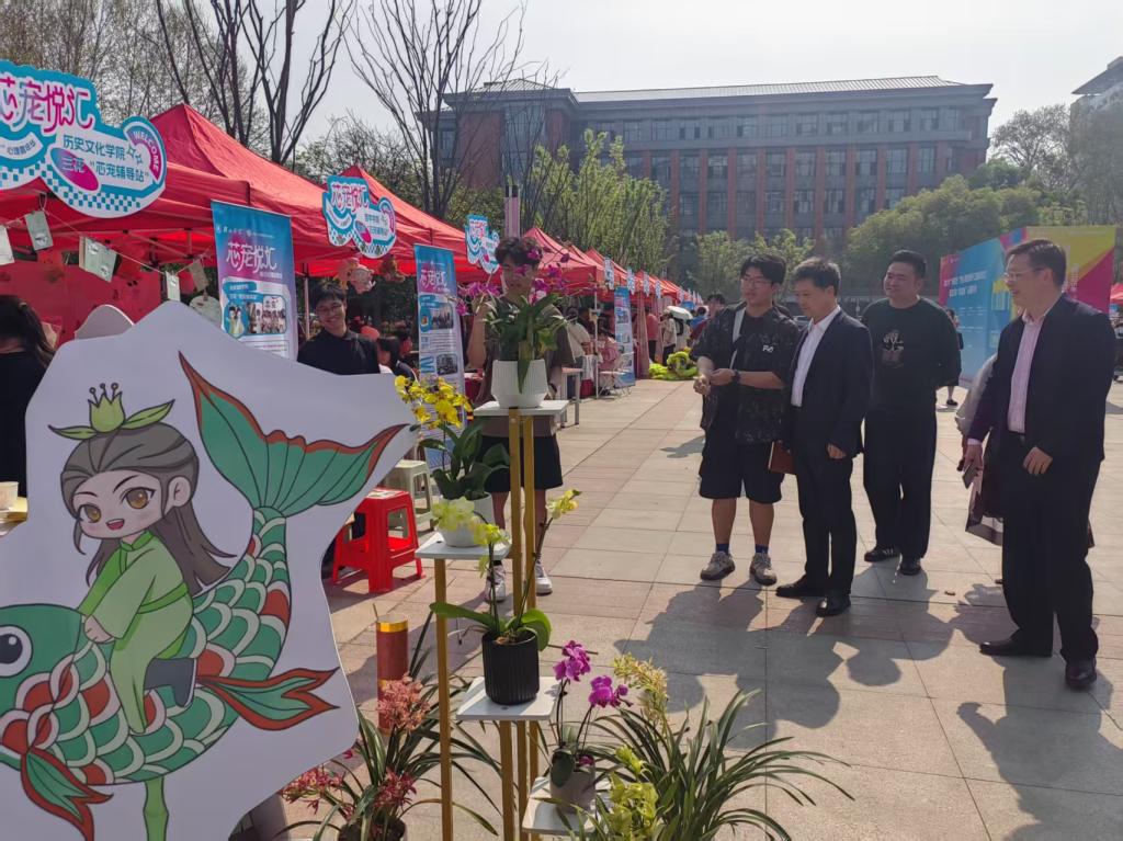 校党委副书记侯勇,英国365部部长陈腾、副部长刘念在学院展位前详细了解学院“兰花”芯宠辅导站建设进展,并与同学们亲切交流学习生活情况。
