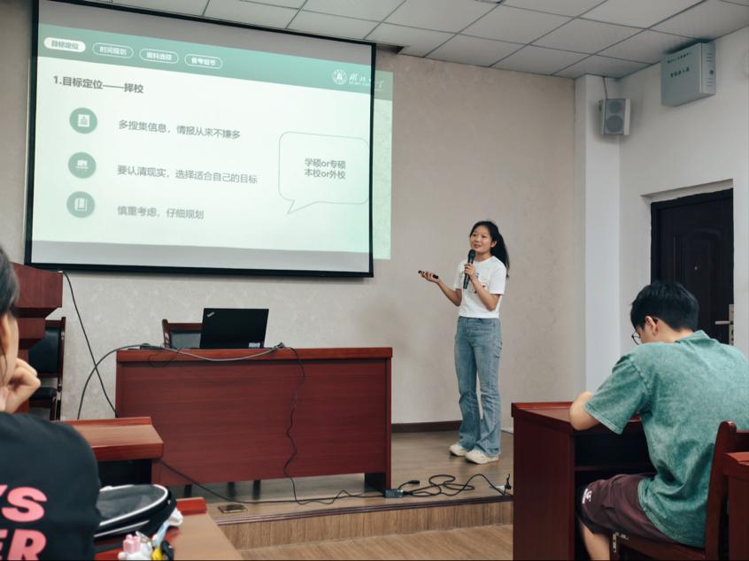 最后,2021级学长学姐耐心解答了同学们的提问,两位班主任进行了总结发言,鼓励同学们坚定信念、脚踏实地,为实现考研梦想不懈努力。本次分享会内容详实、实用性强,帮助同学们明确了考研方向,为备考之路注入了信心与动力。