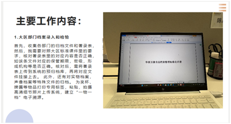 在实习成果汇报环节,同学们用生动的语言分享了各自的实践收获。陈庆杭同学讲述了在华润集团的实习见闻;何雅同学详细介绍了在各区档案馆系统接触档案管理全流程的经历;曹葳同学深情回忆了在水利委人资中心的实习点滴,特别提到指导老师陈老师“工作能力强又富有生活情调”的言传身教。
