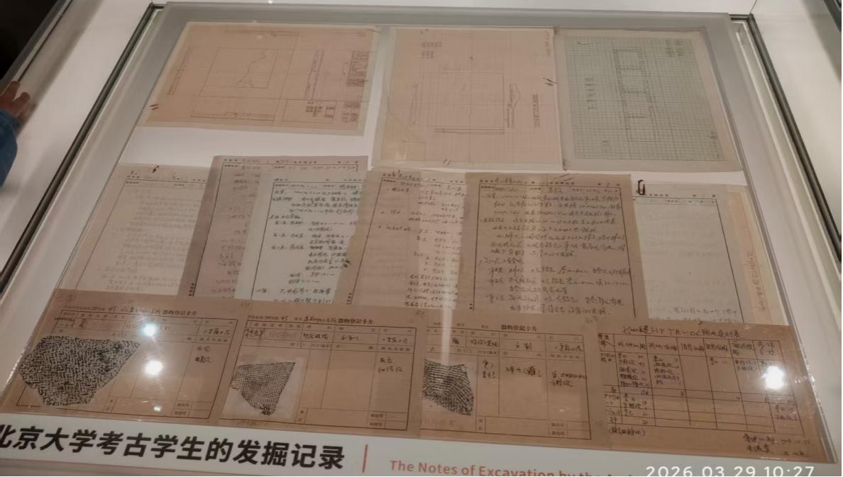 展厅内,北京大学考古前辈留下的泛黄的发掘记录引发学生关注。“这是考古的基本功,你们未来也要撰写发掘日志、绘制器物卡片。”在介绍之余,赵老师勉励学生传承考古人严谨治学精神,在田野考古中书写新一代的文明答卷。