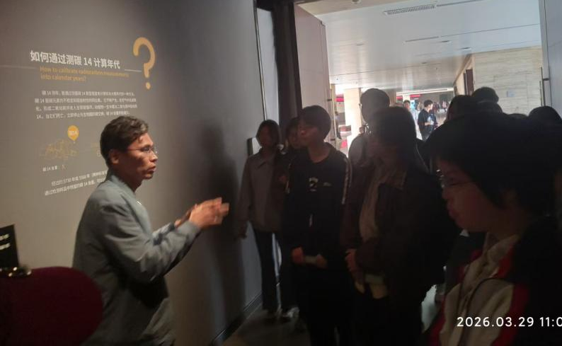 二号展厅“故邑风物”集中展示城邑演变与生产生活文物。赵老师结合碳十四测年技术作讲解,补充课本知识。