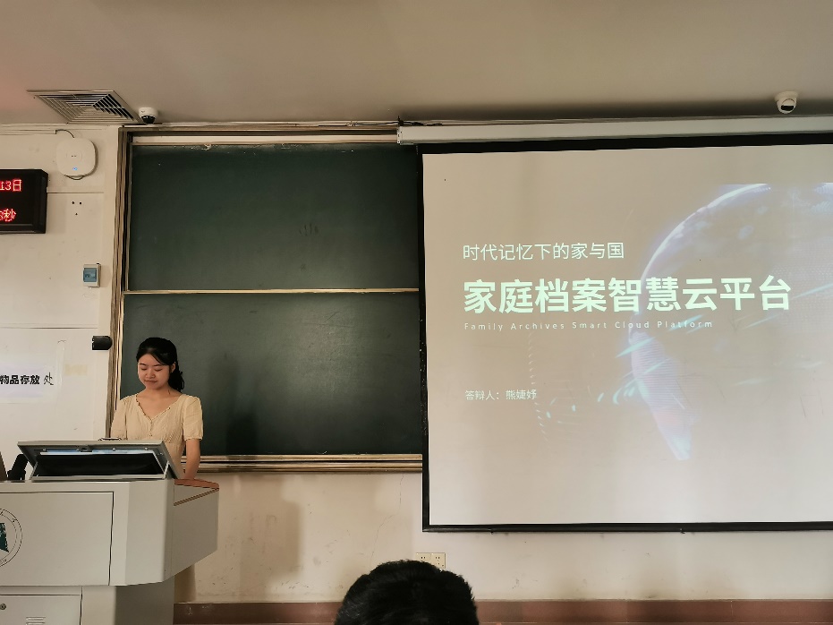 首先展示的是2020级赵金强小组的作品《时代记忆下的家与国》,该作品利用echart等web前端技术对网页进行搭建,从“家”与“国”两条主线出发,用普通人的家庭记忆反映国家和社会的变迁轨迹,并通过一系列的小游戏让更多人走进档案的世界,最后,建设了家庭档案服务平台,为用户提供一站式家庭建档服务。