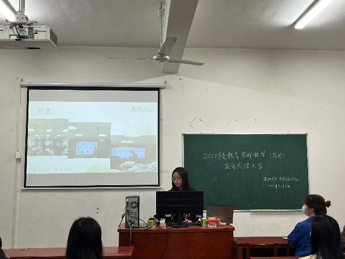 徐云同学分享自己的听课、讲课,对实习学校教师及学生表示感谢,对学校学院给自己实习机会表示感谢。