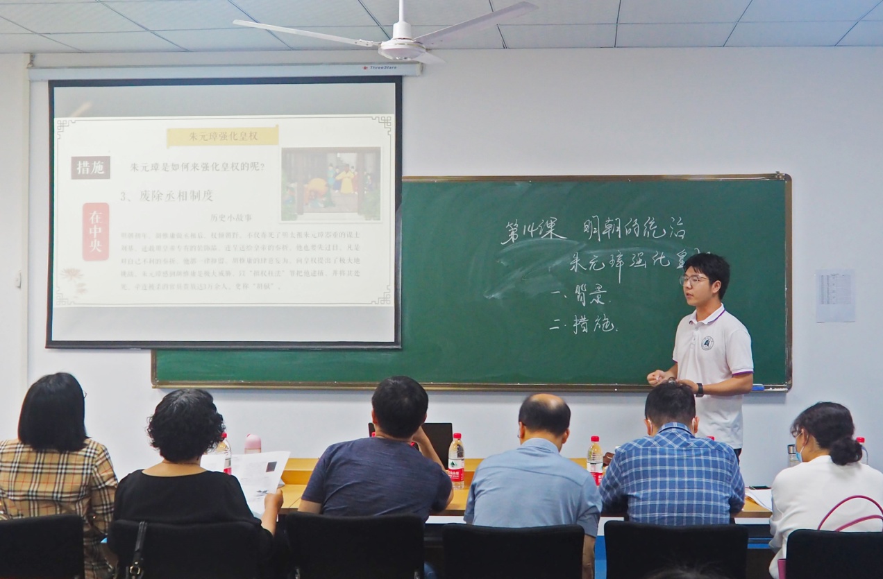 本次比赛分为初赛和决赛2个阶段。初赛在4月16日举行,公共30名同学参加,经过激烈竞争,最终10名同学脱颖而出晋级决赛。决赛从教学内容、教学方法、教师素养、板书设计、课件运用、创新特色等多方面对选手进行综合考核。在比赛过程中,选手们秉承立德树人的教学理念,围绕历史课程教学大纲,精心设计教学过程,教学方法新颖独特。选手们富有创意的语言洋溢着朝气与热情的风采,端庄从容的教态彰显了扎实的教学基本功,充分展示了各自的教学魅力及教学风采,给现场评委及观众呈现了充满激情和活力的魅力课堂。
