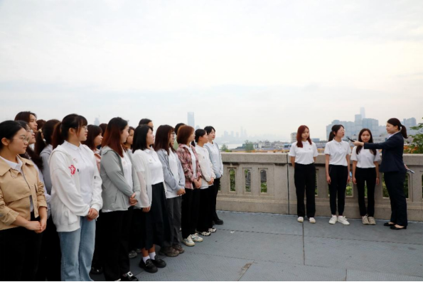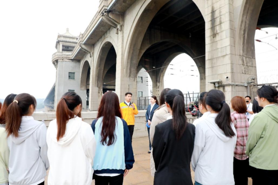 在活动中,师生一同参与武汉现场直播拍摄,参观了武汉长江大桥纪念碑公园、武汉长江大桥纪念馆和武汉长江大桥公路桥面等地点,最终抵达主会场桥梁科技大厦多功能厅。活动中,毛泽东故居讲解员生动展现了毛泽东亲临考察蛇山的场景,引领学生走进历史的瞬间;桥工段员工的分享让学生感受到几十年来养桥工人默默无闻的付出,他们用心灵和汗水保护着这座宏伟的桥梁;武汉长江大桥纪念馆的讲解员通过历史资料的展示,将学生带回到大桥建设的激动人心时刻,感受到那段峥嵘岁月的辉煌;桥史专家则以独到的视角,将苏联专家西林与长江大桥之间的不解情缘展现出来,为这段故事增添了浓厚的情感色彩;湖北和江苏的老中青三代大桥人的讲述更是让学生领略到了他们跨越海洋、连接国家的壮丽事迹,彰显了他们无畏困难、勇攀高峰的决心和勇气。这些优雅而深刻的故事是桥梁建设的重要组成部分,它们将历史、技术和人文融为一体,给予民众深思与启迪。通过这些故事的传承和分享,师生不仅了解到桥梁建设的历史演进,更能够感受到祖国伟大工程建设背后的人性关怀和奉献精神。