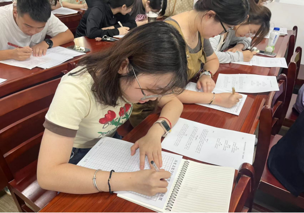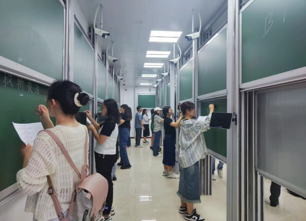 为了提高我院师范生培养质量,提高未来教师人才的教学技能,营造浓厚的师范教育氛围,我院于2023年9月6日在逸夫楼D1013和教5二楼粉笔书法训练教室开展了师范生三字笔比赛。本次比赛由硬笔、粉笔、软笔书写三项构成,共有60余名历史学师范生和教育硕士参加,郭勇老师、张宁老师、刘馗老师以及上届学校三笔字比赛获奖选手杨涵、田彬担任了比赛评委。