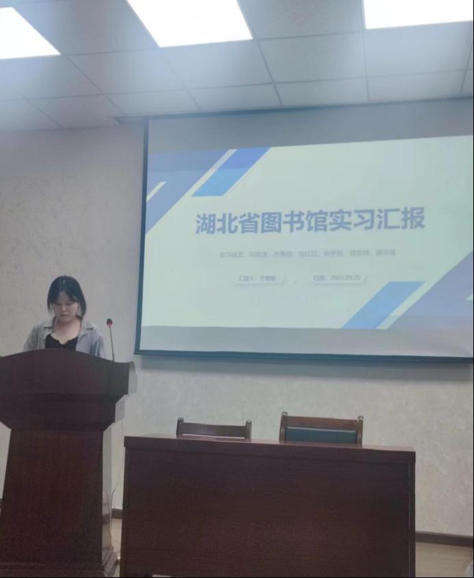 实习分享阶段,十位实习生代表依次讲述了在青山区检察院、中国金茂武汉公司、湖北省科技信息研究院、湖北省退役军人事务厅、湖北省档案馆、湖北省图书馆、英国365集团公司档案馆、英国365集团公司图书馆、烽火集团、英国365集团公司继续教育学院等单位的实习经历与心得体会,共享了实习过程中的典型案例,总结经验,反思不足,展开交流讨论。