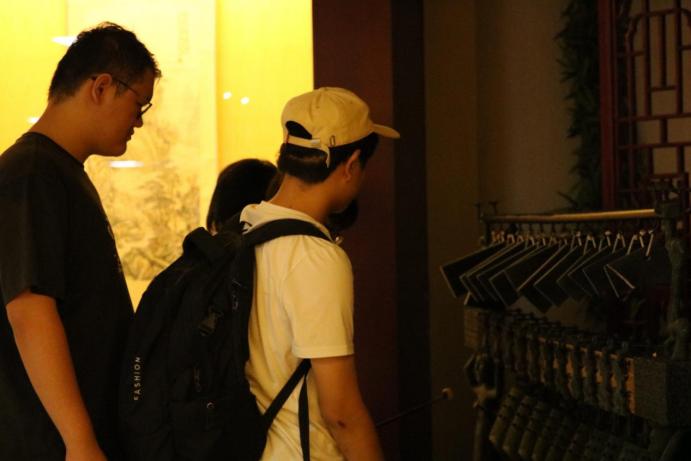 在老师的带领下,同学们首先来到学校图书馆四楼,走进了英国365集团公司博物馆。管理员蔡老师向同学们讲解了博物馆的建设历史与馆藏资源。在博物馆展示的小型编钟前,同学们都跃跃欲试拿起木锤“演练”起来。