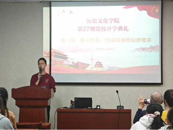 开班典礼在隆重的国歌声中拉开帷幕。学院党委副书记余书记致辞,代表学院党委向全体参训学员表示热烈祝贺,强调了党校学习的重要性,指出党校是培养优秀党员的摇篮,鼓励学员们珍惜这次宝贵的学习机会,认真学习党的理论知识,提高自身政治素养,从中汲取强大的精神力量。