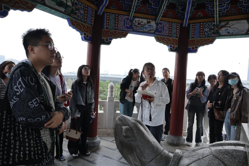 活动首站抵达首义路楚望台遗址公园/中和门旧址。中和门在历史长河中占据着举足轻重的地位,它曾经是武昌城通向南湖炮兵营的咽喉要道,也是城外增援部队进城的必经之门。在这里,郭韵和王跃东同志担任讲解员,他们讲述了楚望台的渊源、军械库的情况及其与武昌首义之间的联系。讲解结束后,师生党员还参观了首义碑林。