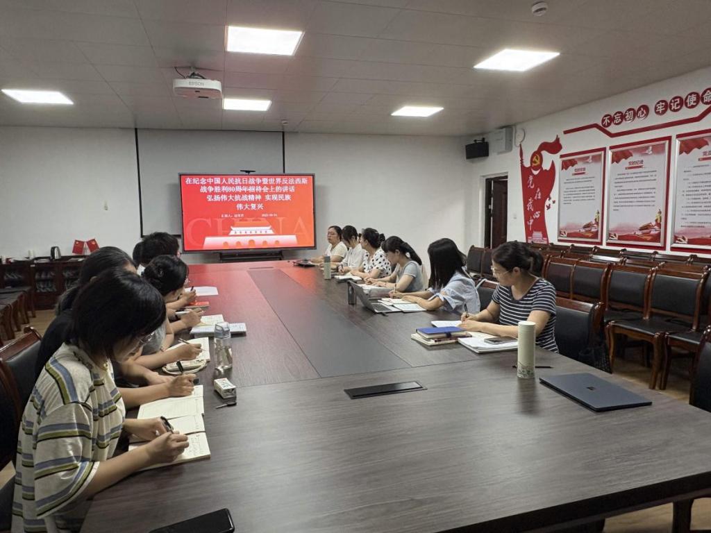 随后支部书记带领全体成员学习了习近平总书记在纪念中国人民抗日战争暨世界反法西斯战争胜利80周年大会上的讲话,支部书记指出全体成员要牢记总书记的讲话,“牢记由鲜血和生命铸就的中国人民抗日战争的伟大历史”“珍视和平、警示未来,坚定不移走和平发展道路,坚定不移维护世界和平,万众一心把中国特色社会主义推向前进”,努力弘扬伟大抗战精神,为实现中华民族伟大复兴而奋斗。