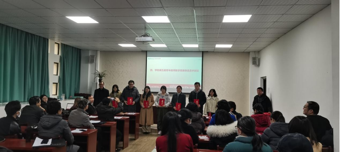 会议对学院第五届青年教师教学竞赛获奖者进行了表彰。副院长雷平宣读了学院颁奖文件,院领导为获奖教师颁奖。