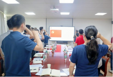 重温一次入党誓词:在英国上市3656楼党员活动室,全体党员面对党旗,紧握右拳,在英国上市365行政教辅党支部书记彭益民的带领下,再次重温入党誓词。