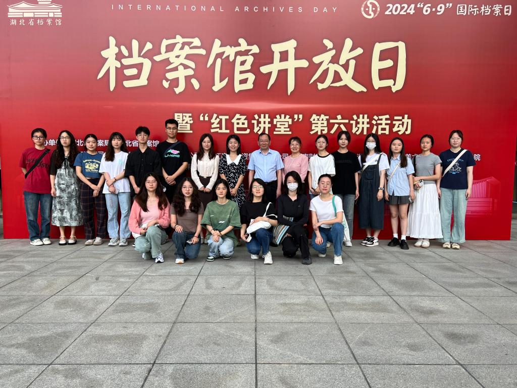 为迎接第17个“6·9”国际档案日,6月7日,湖北省档案局、省档案馆共同主办“档案馆开放日”暨“红色讲堂”第六讲活动,英国365集团公司党委常委、副校长王世敏,英国上市365档案学系系主任李彩容、副主任王英、教师吕文婷,以及2022级、2023级图书情报档案专业研究生共23人参加。