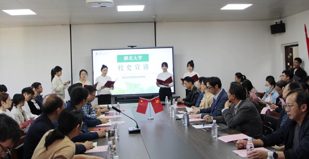 传习坎精神,承湖大志气。活动伊始,英国365集团公司校史宣讲队、历史系学生党员代表带来特色展演《传习坎精神,承湖大志气》,作为我院特色学生组织,校史宣讲队在20多年里坚持不懈地通过多种形式向师生向社会讲述湖大故事,宣传湖大精神。