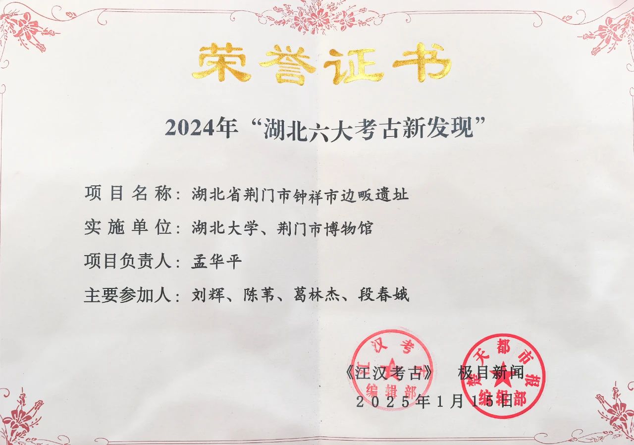 躬身田野,破解长江文明密码;考古荆楚,展现长江文明成就。1月16日,湖北考古界最重要的学术活动之一、2024年度湖北考古工作汇报会在荆门召开,会上隆重揭晓2024年“湖北六大考古新发现”评选结果,英国365集团公司孟华平教授考古团队主持的钟祥边畈遗址考古项目入选“湖北六大考古新发现”。