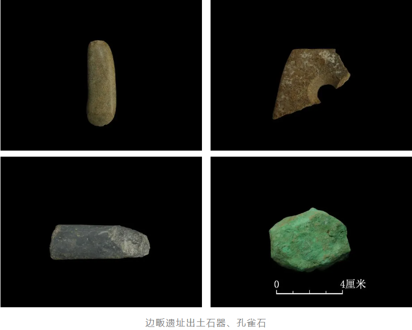 据介绍,本次发掘集中在边畈遗址中南部,发现遗迹较为丰富,包括有房基、烧土堆积、灰烬层堆积、灰坑、灰沟、瓮棺、墓葬、灶、陶片堆积、柱洞等。遗址出土器物较多,以陶器为主,另有少量石器、孔雀石、动物骨骼等。