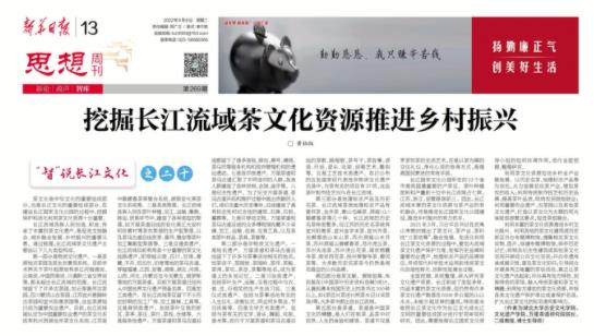 茶文化是中华文化的重要组成部分,也是长江文化的重要组成部分,在建设长江国家文化公园的过程中,挖掘保护和活化利用茶文化资源十分重要。