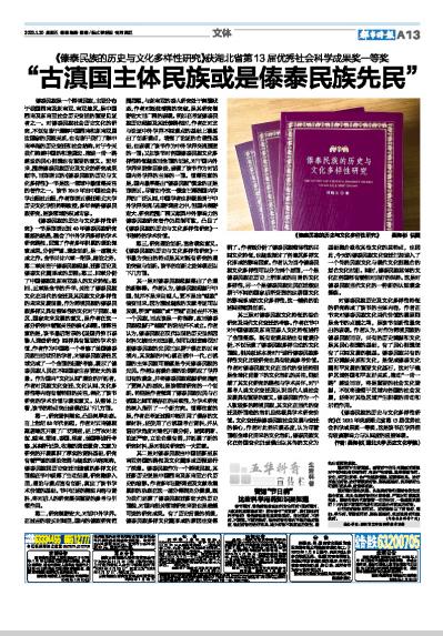 《傣泰民族的历史与文化多样性研究》在2022年荣获湖北省第13届优秀社会科学成果奖一等奖,这是该书在学界拥有较高影响力与认同度的直接体现。