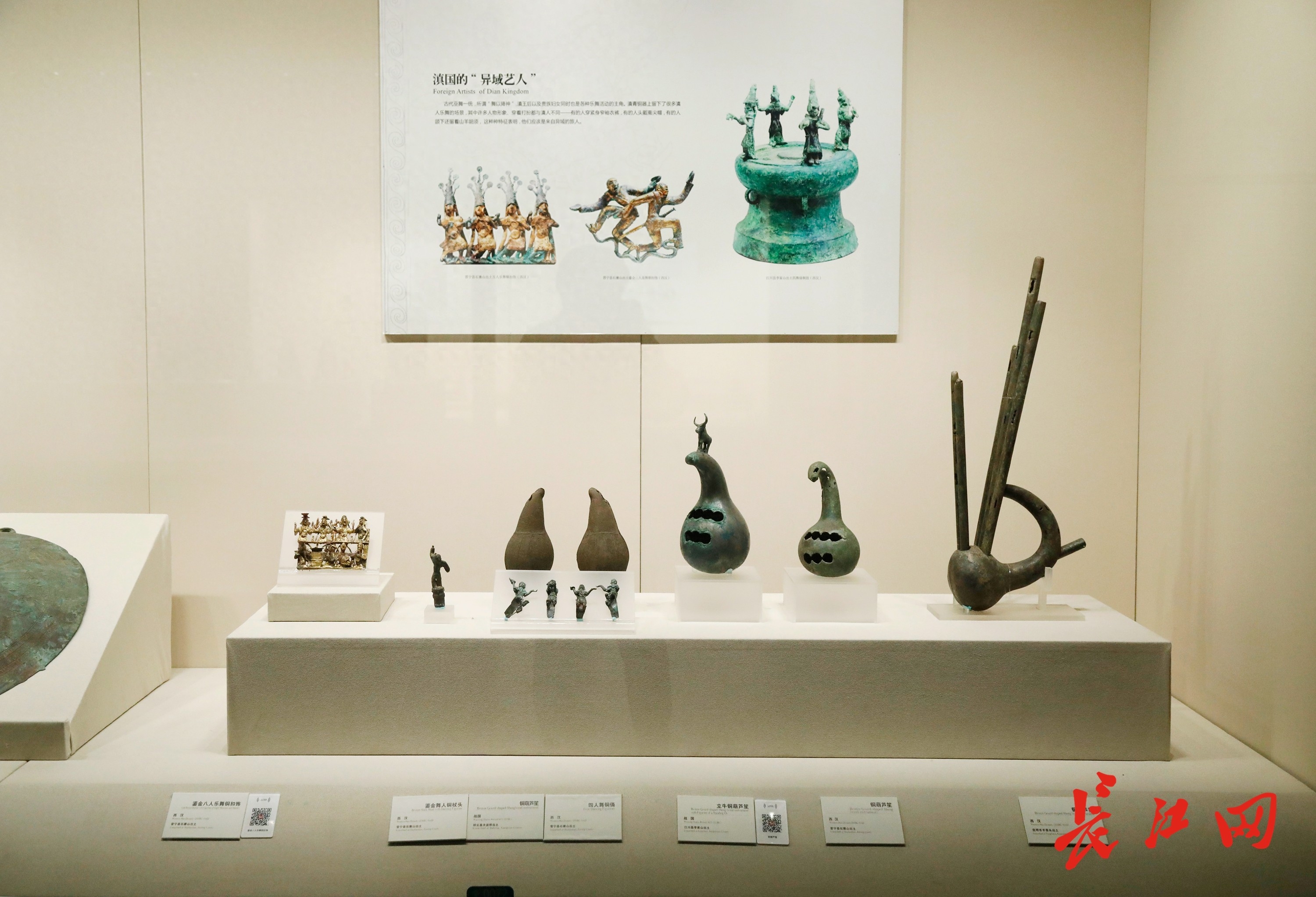 云南省博物馆内陈列有铜葫芦笙及笙斗的展柜。王筝 摄